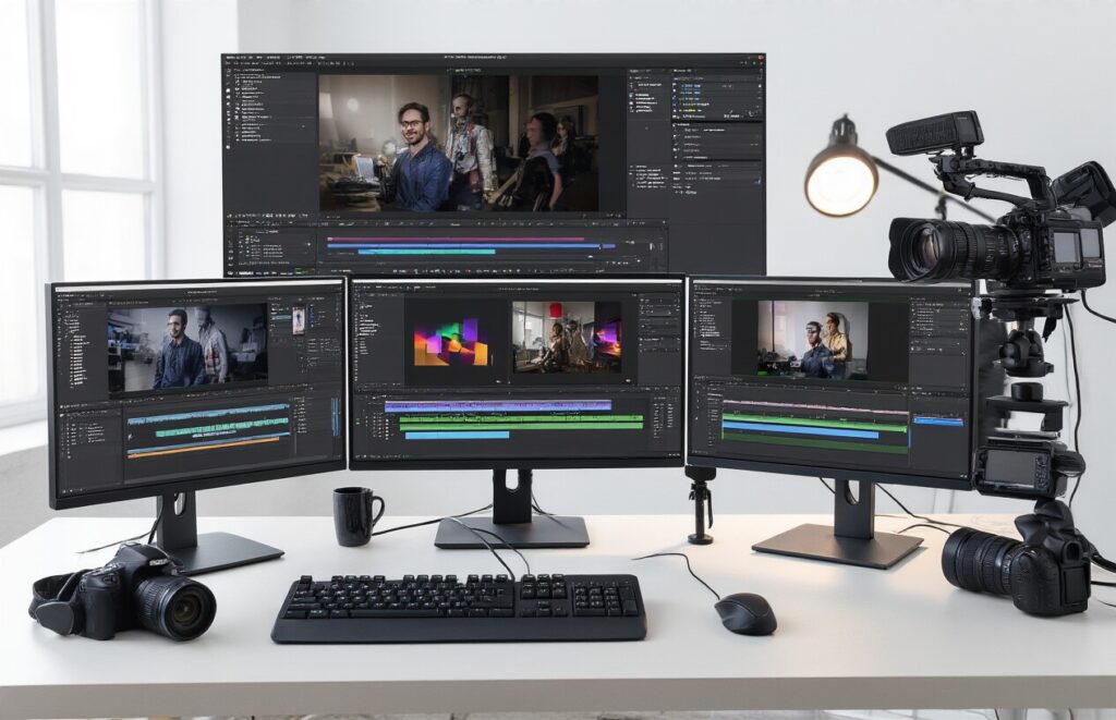 Adobe Premiere Pro leads the premium market with Adobe Sensei AI integration, offering automatic reframing, intelligent audio cleanup, and predictive text generation for captions. The Scene Edit Detection feature can automatically cut imported footage at scene changes, while Auto Reframe ensures your content works across multiple platforms without manual adjustment.